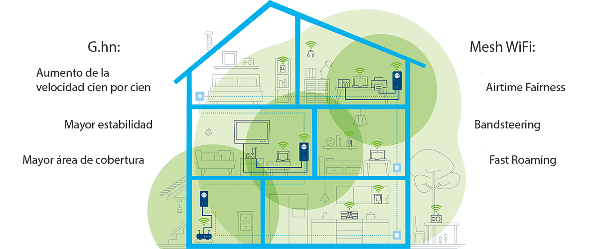 Además de significar un enorme incremento de la velocidad en la red principal Powerline desde la actual hasta los 2400 Mbps, la actualización a G.hn también implica una mayor estabilidad y un área de cobertura PLc más amplia de hasta 500 metros.